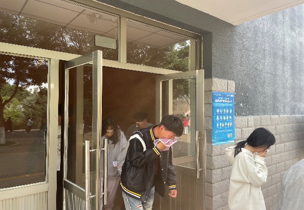 下午2时30分,教学区应急疏散演练率先启动。随着模拟火灾警报声突然响起,教学区某楼层“浓烟”弥漫,各班级师生迅速响应,在现场教师人员的指挥下,严格遵循“捂鼻、低姿、靠右行”的疏散原则,沿着预设安全路线快速向教学楼前广场集结。疏散演练结束后,赤峰市消防救援支队带来的消防车与消防器械展示环节,让师生们近距离感受消防力量。
