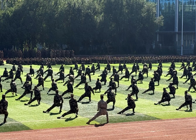 在特色科目展示环节,信息技术系捕俘拳表演方队成为全场焦点。出拳如风、踢腿如电,呐喊声震彻操场,每一个招式都刚劲有力、气势十足。同学们以标准的动作、饱满的热情,展现出信科学子褪去青涩后的坚毅与果敢,赢得在场师生的阵阵掌声。